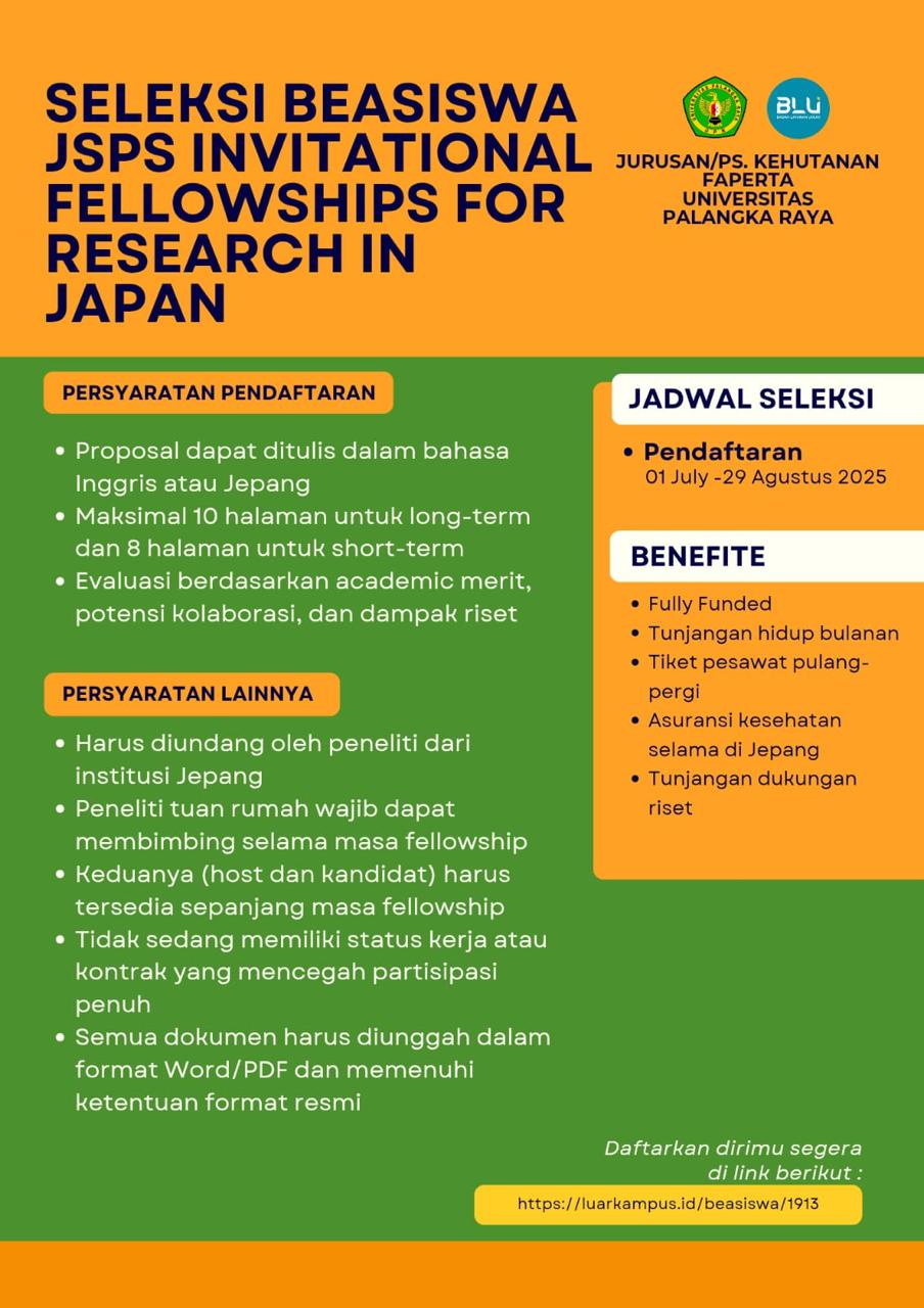 SELEKSI BEASISWA JPPS INVITATIONAL FELLOWSHIP FOR RESEARCH IN JAPAN